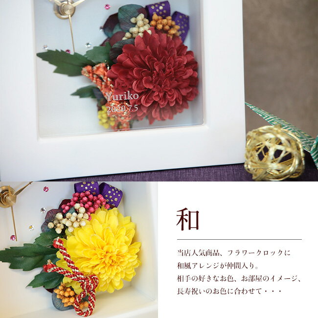 【和風フラワークロック 名入れ花時計 】 母の日 長寿祝い 贈り物 還暦 還暦祝い 表彰 退職祝い 緑寿 古希 古稀 喜寿 傘寿 米寿 長寿 卒寿 和風 和小物 刻印 アーティフィシャルフラワー ギフト おしゃれ 誕生日 プレゼント 退職祝い