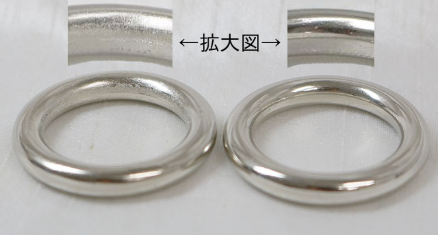 通常のわんこ丸カンを、しっかり磨いてからメッキを掛けたので、丸カン内側のギザギザがなくなり、スムーズな手触りの丸カンになりました。